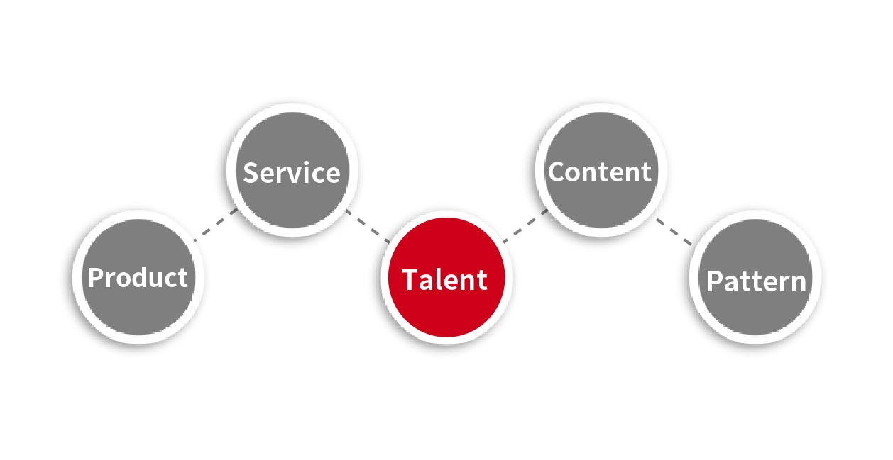 以人才為核心,以產(chǎn)品為基石,以內(nèi)容為導(dǎo)向,以服務(wù)為支撐,以模式為基礎(chǔ)